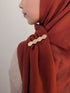 I wore with your instant inner gripper and your magnet. The shawl stays and has natural flow throughout the day during raya. I like the fact that its lustre occasion look but also subtle.
